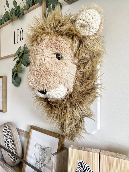 ClaraLoo Animal Wall Mounts are made with faux fur, polyester stuffing, yarn, felt (for some of the animals), and a wooden plaque.